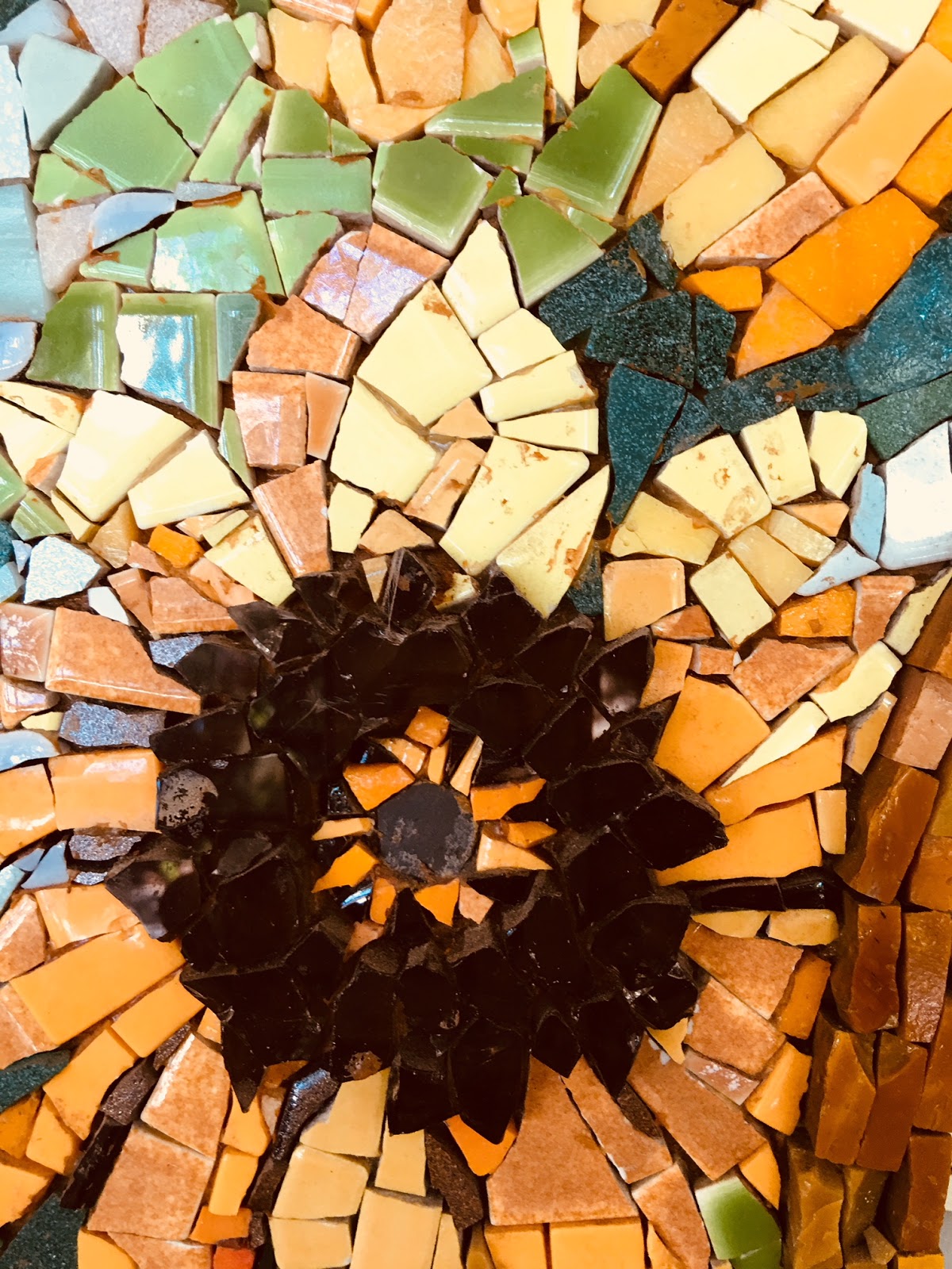 the topic of the Ca' d'Zan came up and Judy shared a great story. When the Ca' d'Zan was being renovated in 2002, Judy got a phone call from a friend who was working on the renovation project and was told that one of the beautiful tinted glass windows had been broken during handling. Judy, amongst her many artistic talents, created glass mosaic pieces, so she rushed right over and collected the broken pieces. She showed Liz and John what she had created with the Ca' d'Zan's brownish pieces broken window glass – it was a beautiful sunflower and the brown pieces were the seeds! John knew that sunflowers were Liz’s favorite (she was even wearing a sunflower t-shirt that day!) and he bought it from Judy for Liz on the spot. It hangs on our lanai and shines in the sunset every day in memory of John and Judy.
